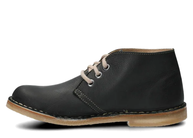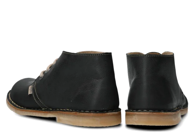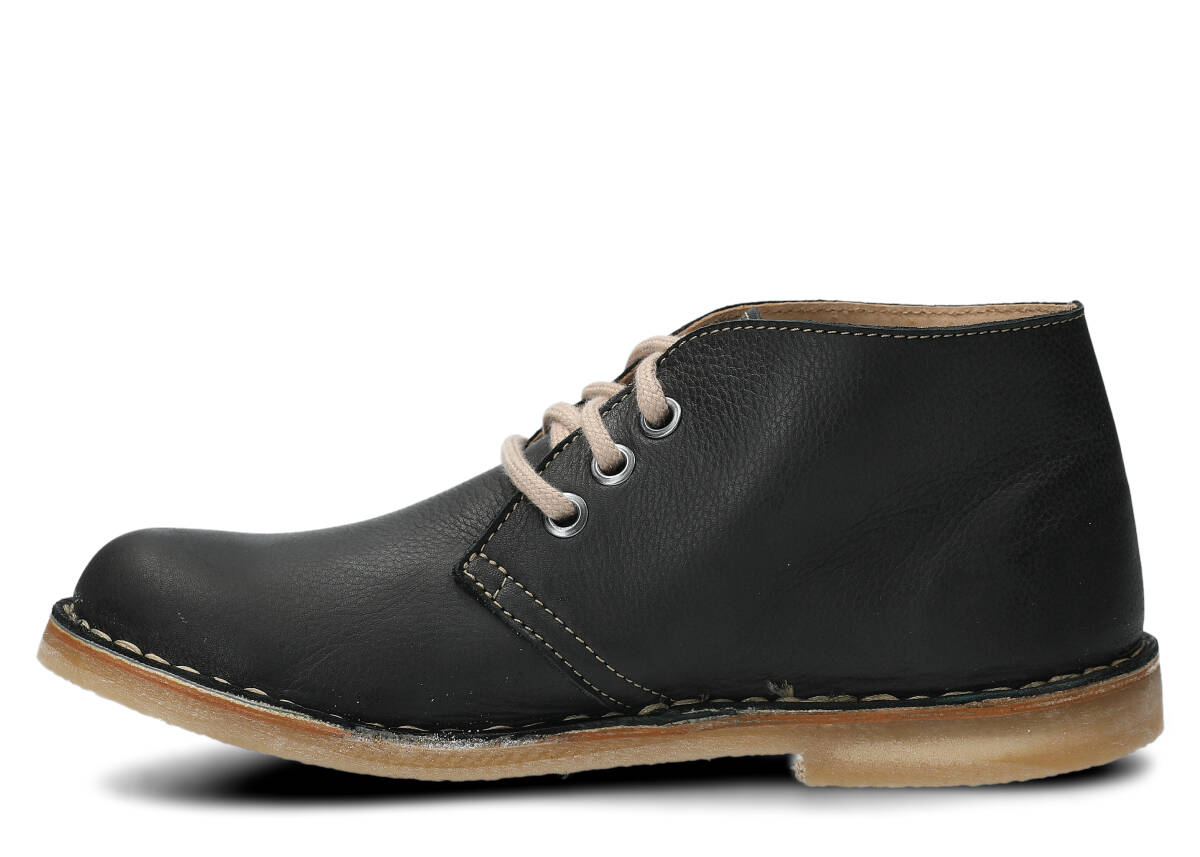 Kabir - full-grain leather, smooth, not very flexible, hard. Similar in structure to Bosman type leather. Two-toned. Under the black top layer is the base color. The proper effect is achieved by mechanically abrading the black layer. Footwear made of Kabir leather changes color to a more intense shade during use.