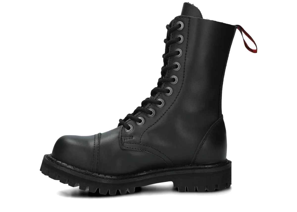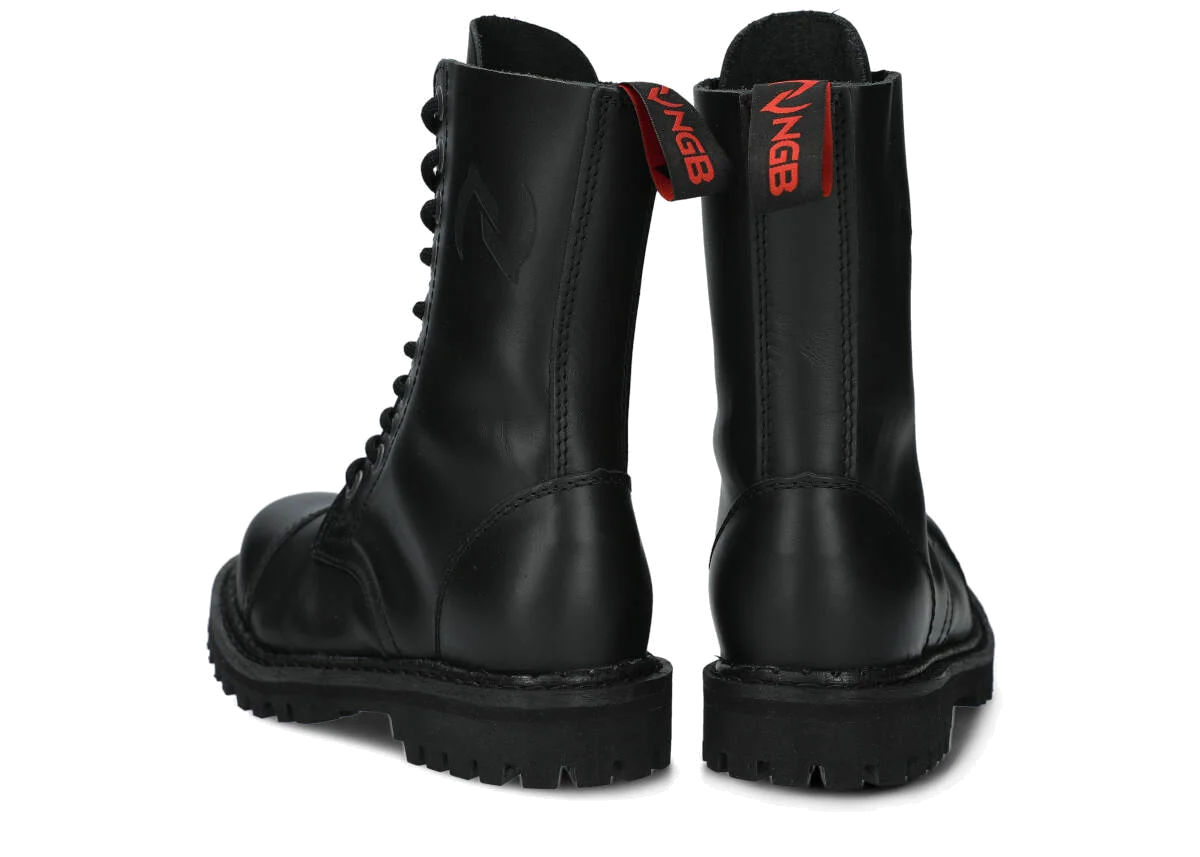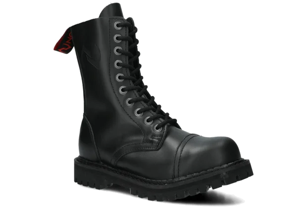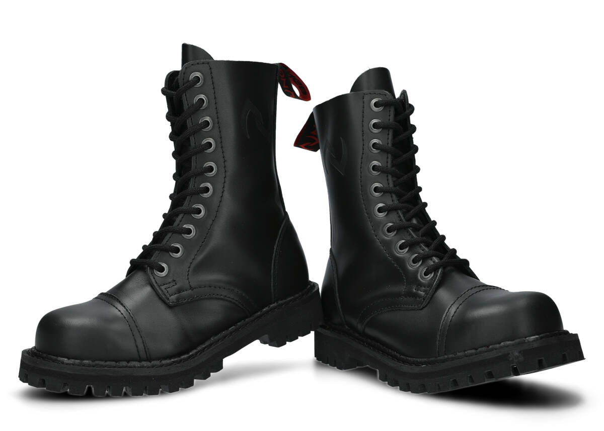 The 10-eye black boots are made to provide the best comfort. Manufactured with precision, with the sole is made of real Polish rubber, decorative screws and metal brand logo.