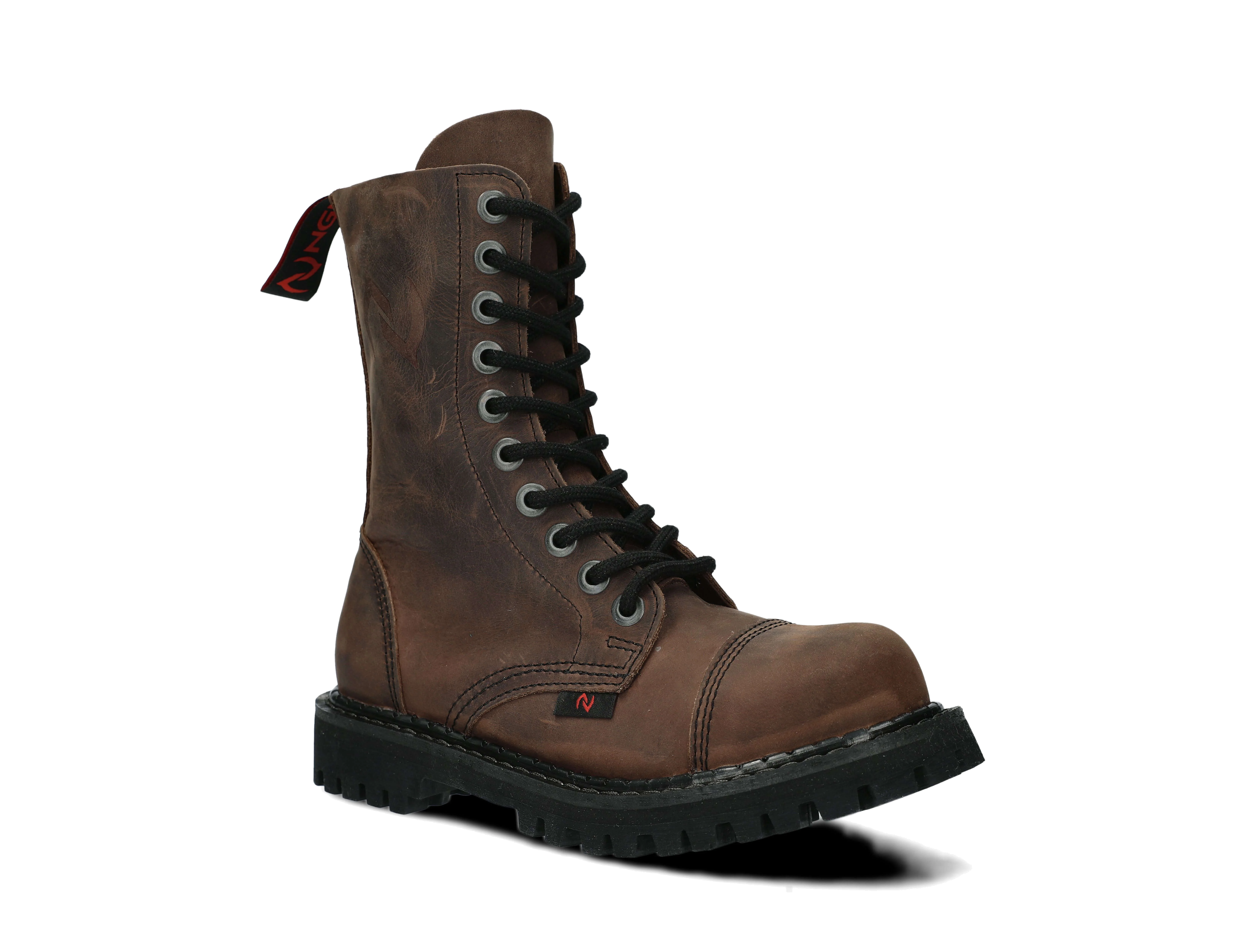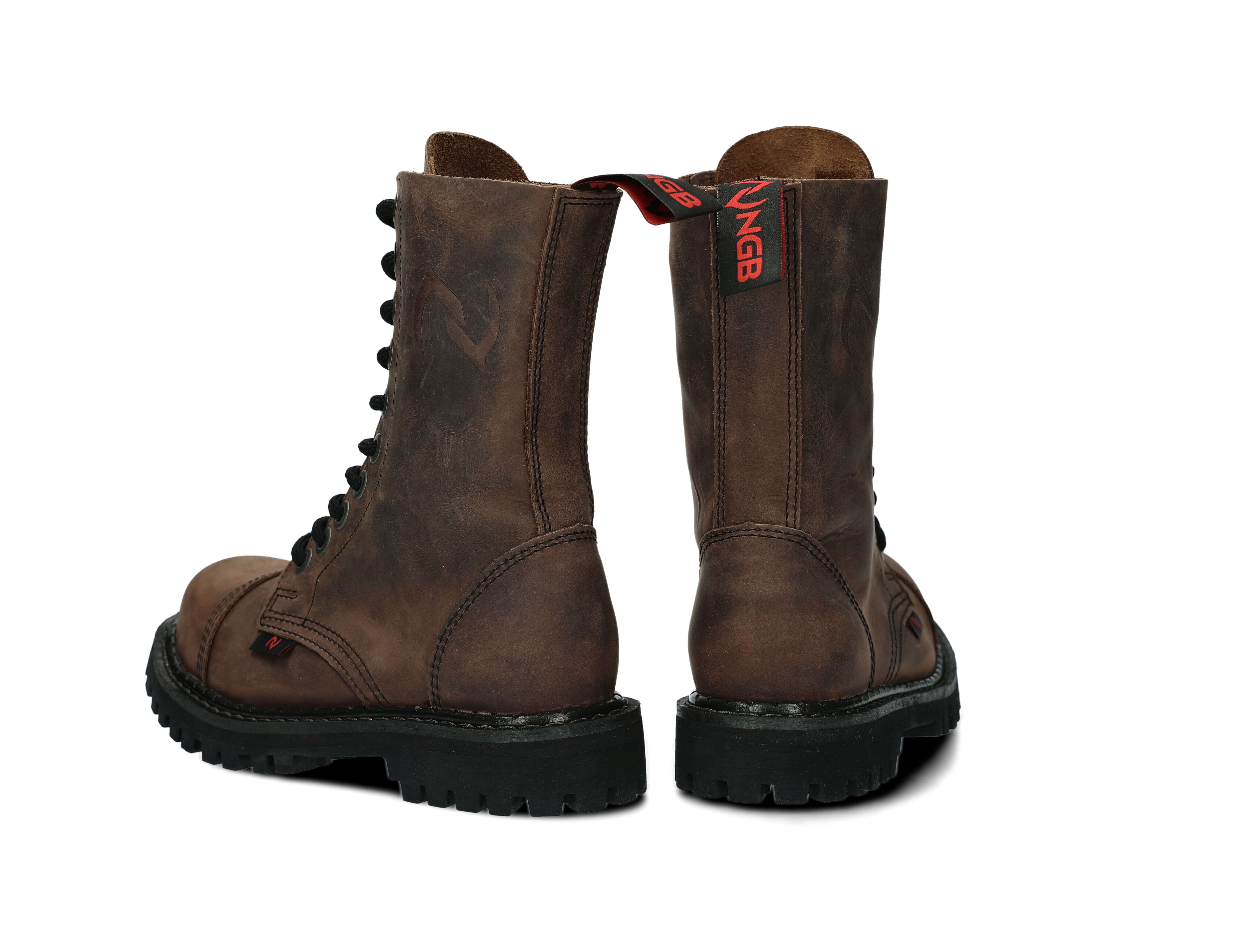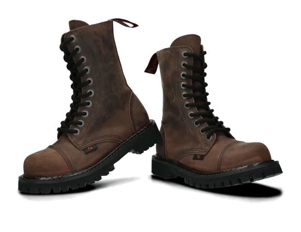 The 10-eye olive boots are made to provide the best comfort. Manufactured with precision, with the sole is made of real Polish rubber, decorative screws and metal brand logo.