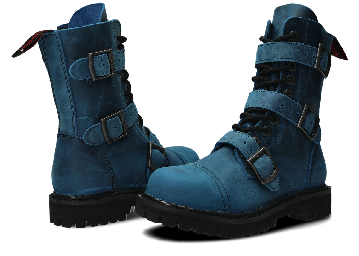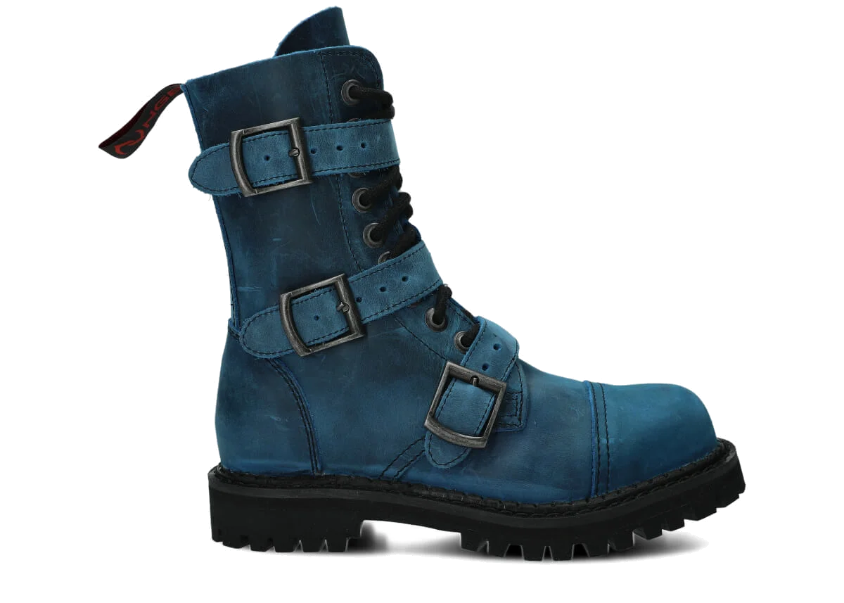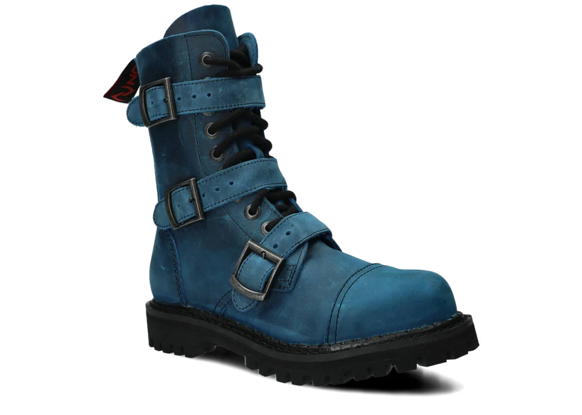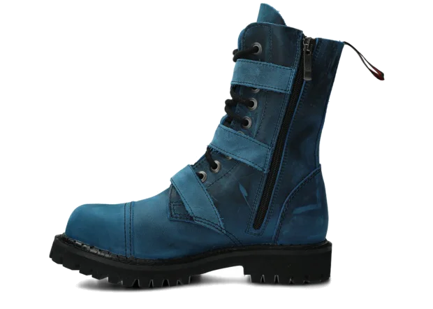 NAGABA 523 cobalt crazy leather ankle boots with steel toes are the ideal choice for anyone who wants to combine style and safety.