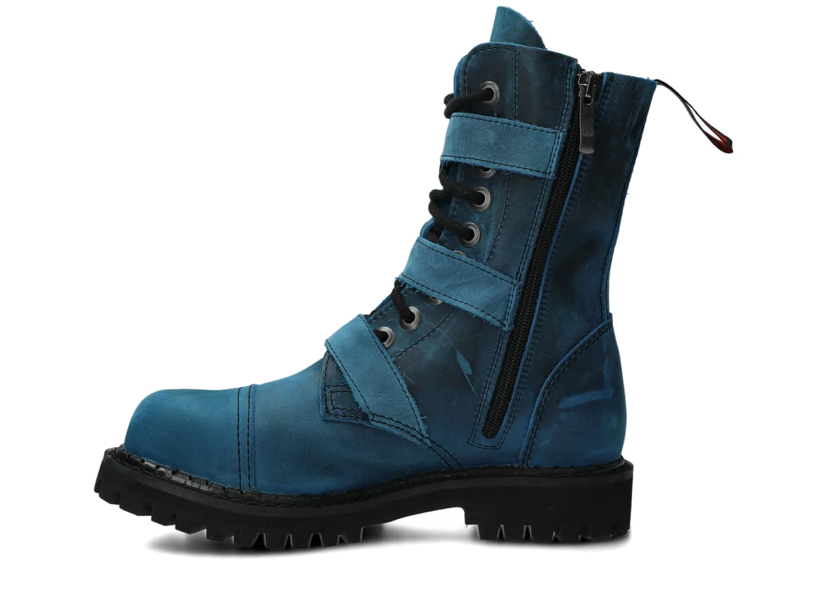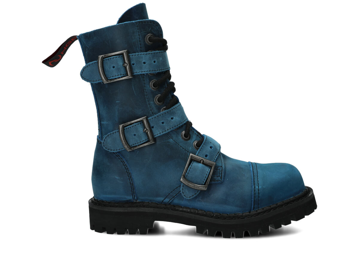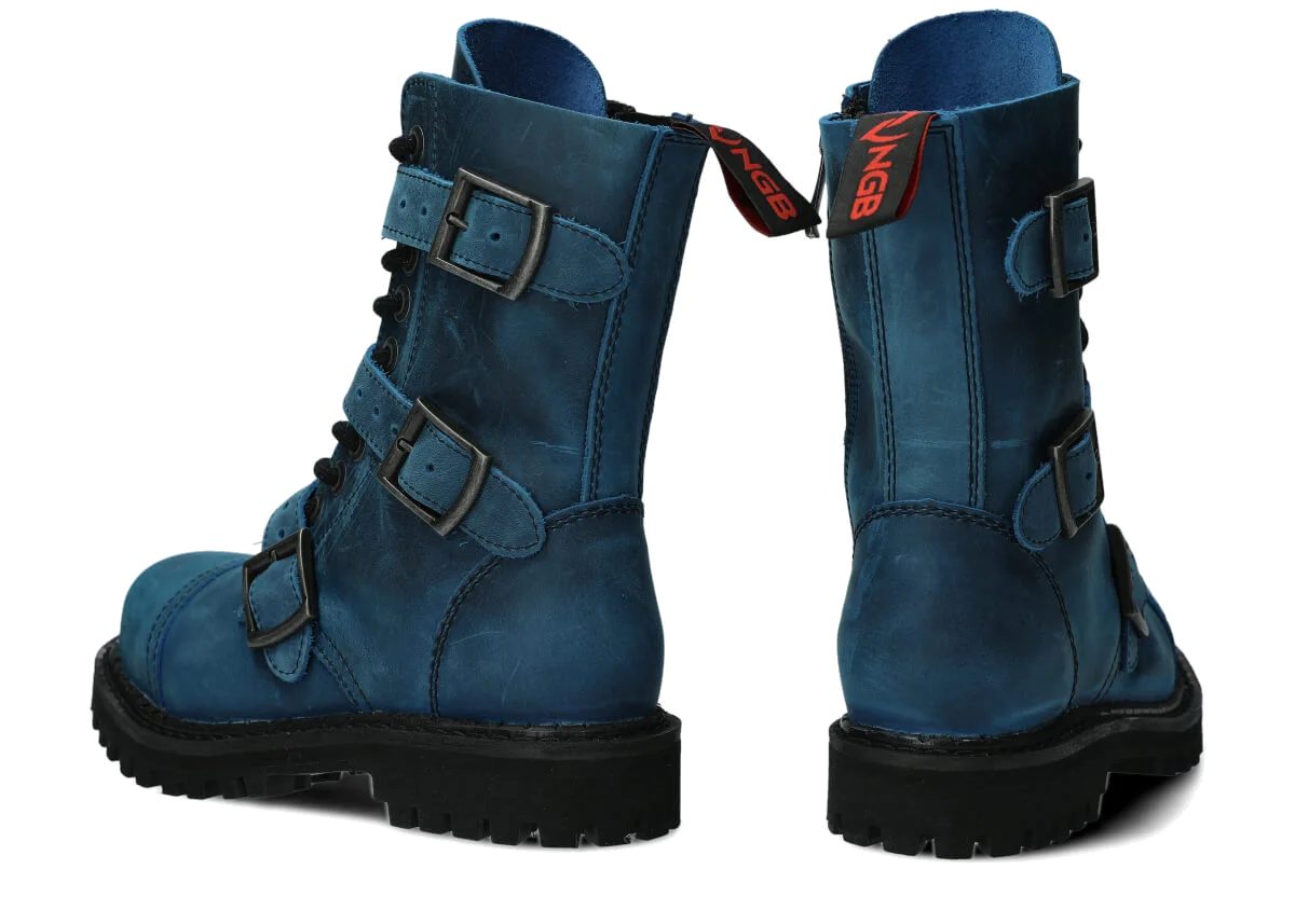 NAGABA 523 cobalt crazy leather ankle boots with steel toes are the ideal choice for anyone who wants to combine style and safety.