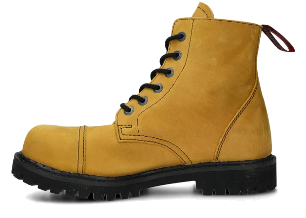 Crazy - meaty, thick full-grain leather. The grain finish is oiled (using wax or fat). Very durable leather, thus often used for trekking, trapper, and massive boots. The leather has characteristic dark, greasy stains, in some places stretching to the base color and in others remaining dark. The leather often has scratches, scuffs, and discolorations that make it unique.