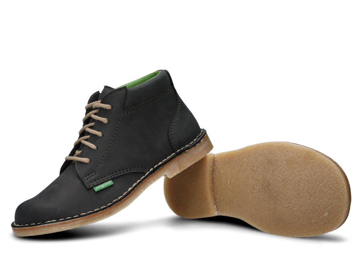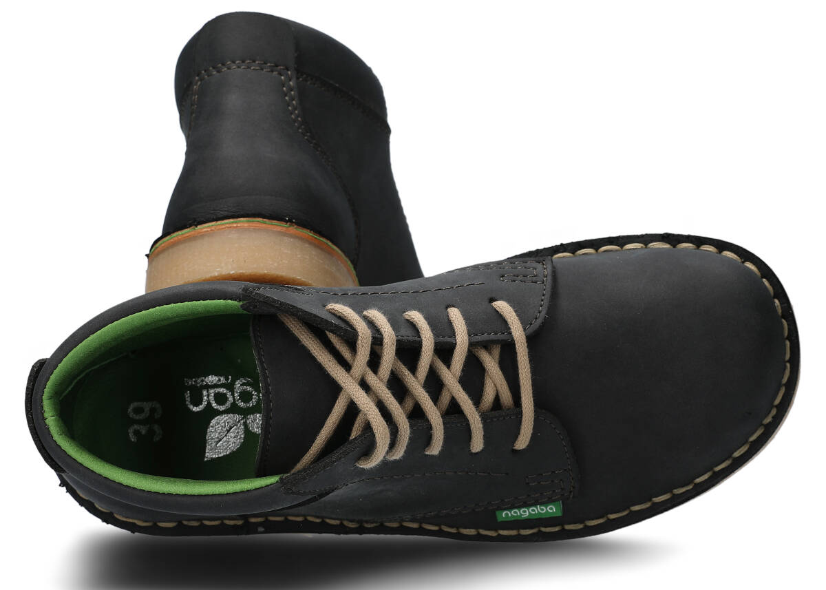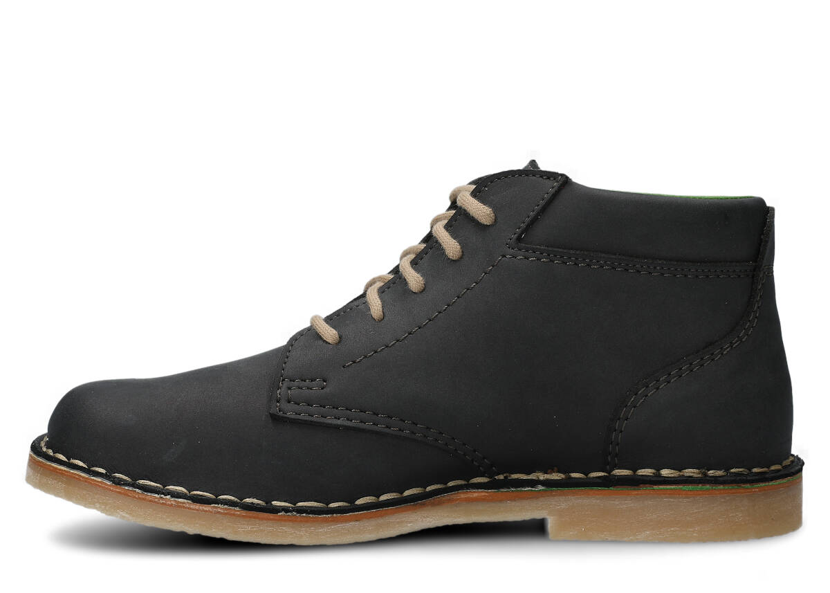 Kabir - full-grain leather, smooth, not very flexible, hard. Similar in structure to Bosman type leather. Two-toned. Under the black top layer is the base color. The proper effect is achieved by mechanically abrading the black layer. Footwear made of Kabir leather changes color to a more intense shade during use.