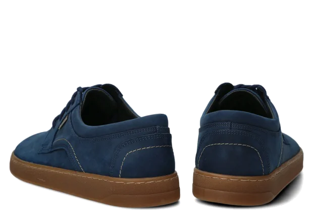 The men's casual shoe Nagaba 476 in navy blue crazy leather is offered in a wide range of sizes, from 41 to 45, with various color options, including a contrasting light-colored sole.