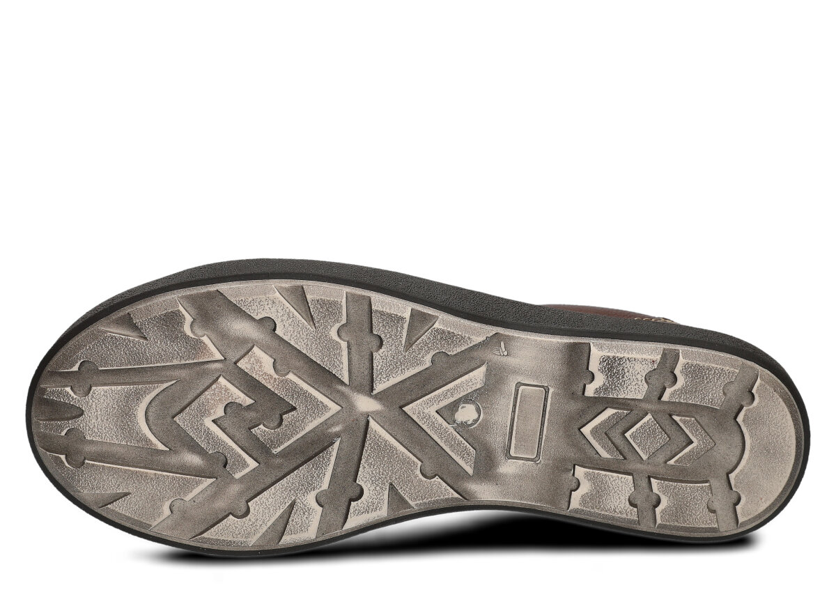 Crazy - meaty, thick full-grain leather. The grain finish is oiled (using wax or fat). Very durable leather, thus often used for trekking, trapper, and massive boots. The leather has characteristic dark, greasy stains, in some places stretching to the base color and in others remaining dark. The leather often has scratches, scuffs, and discolorations that make it unique.