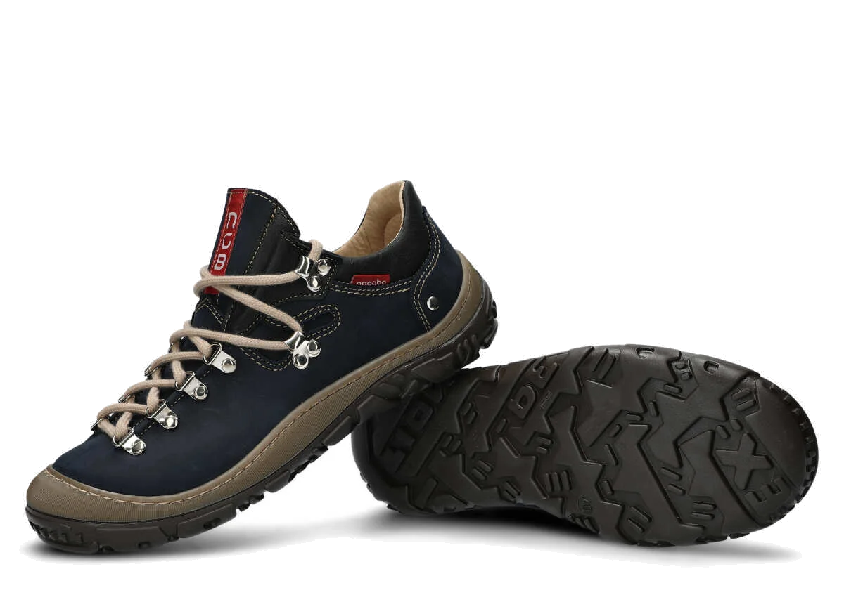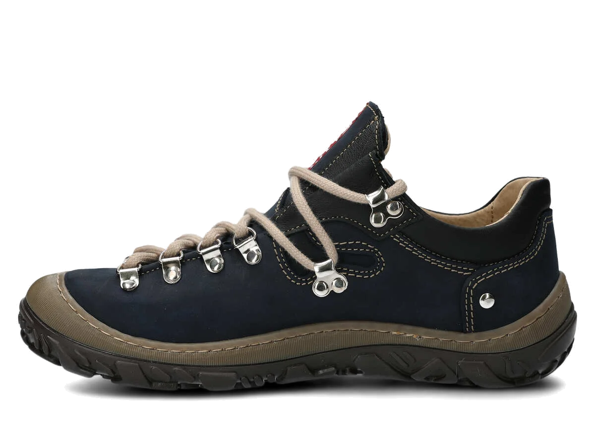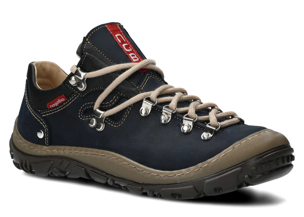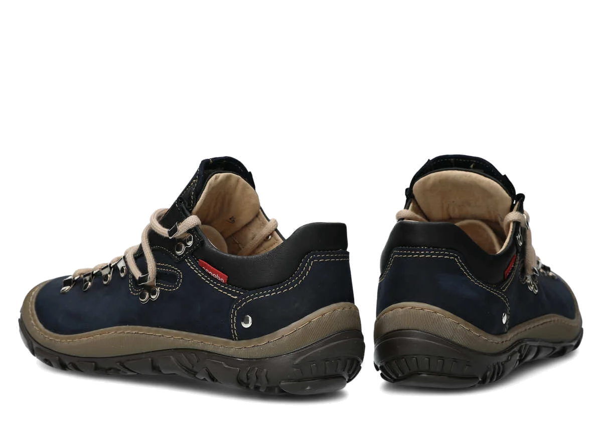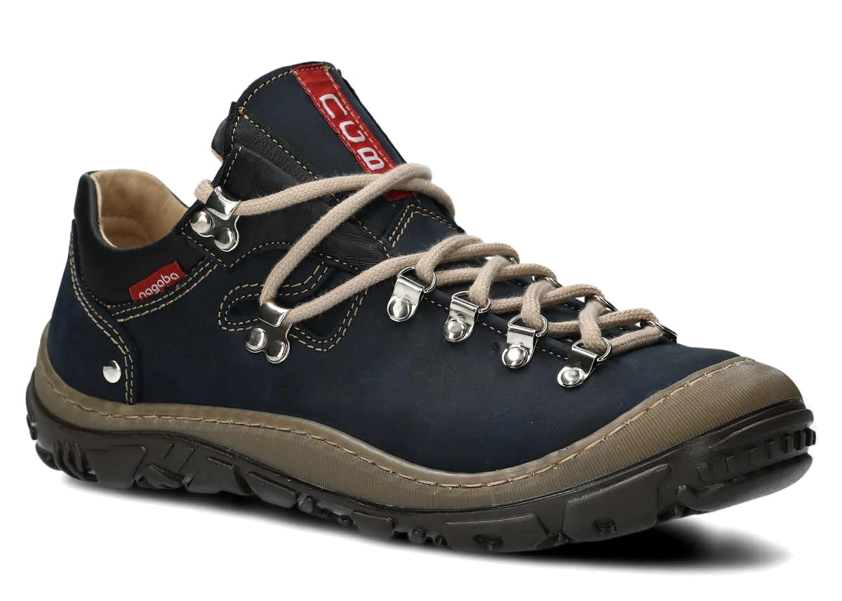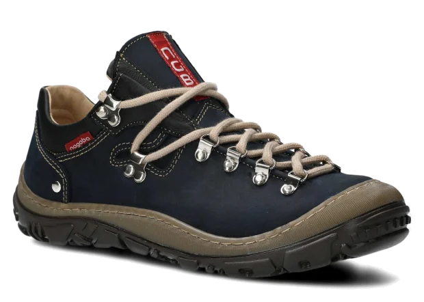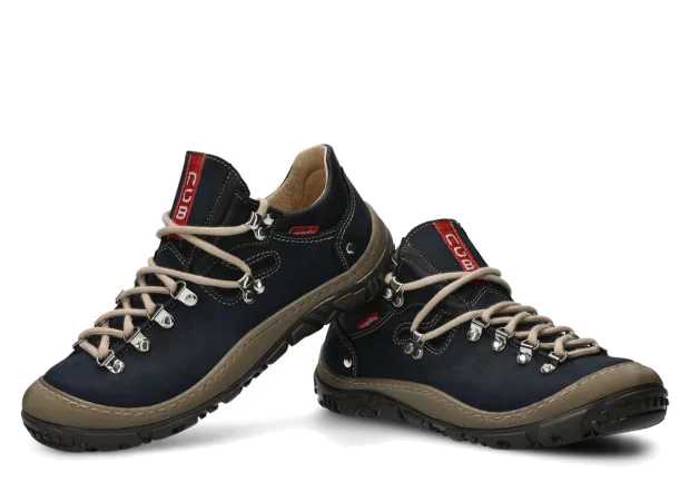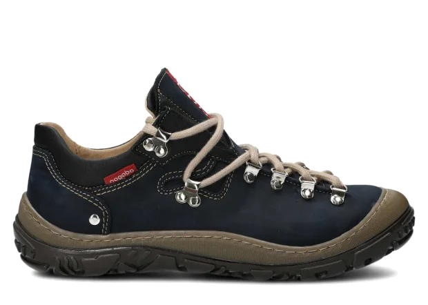 Opt for the navy blue leather trekking boots to properly protect feet throughout many active seasons.