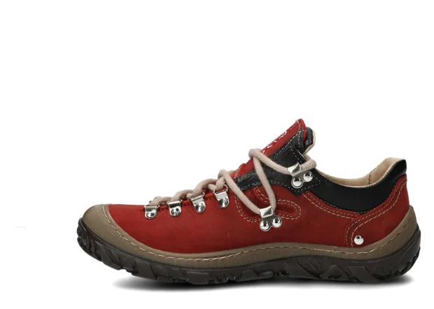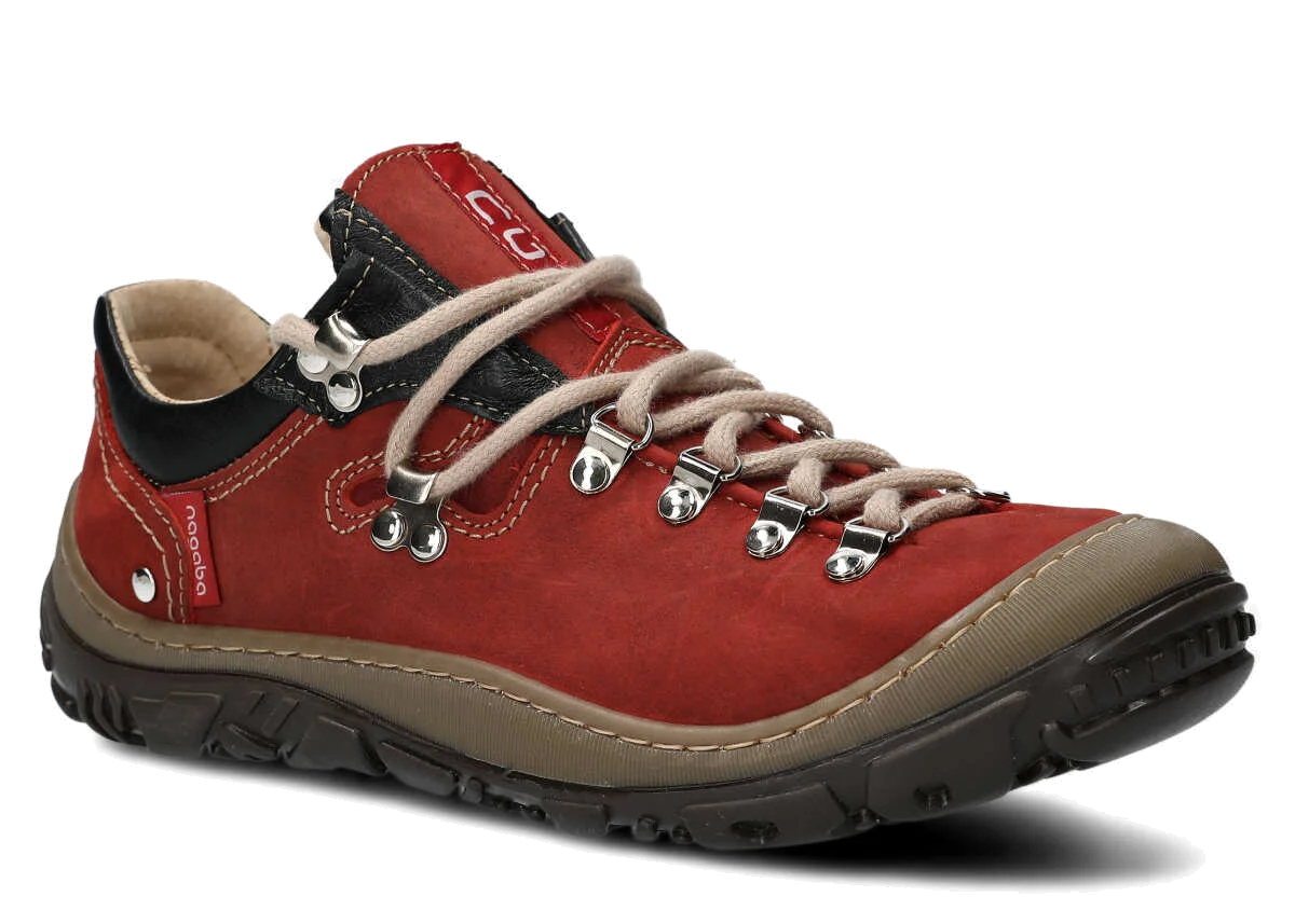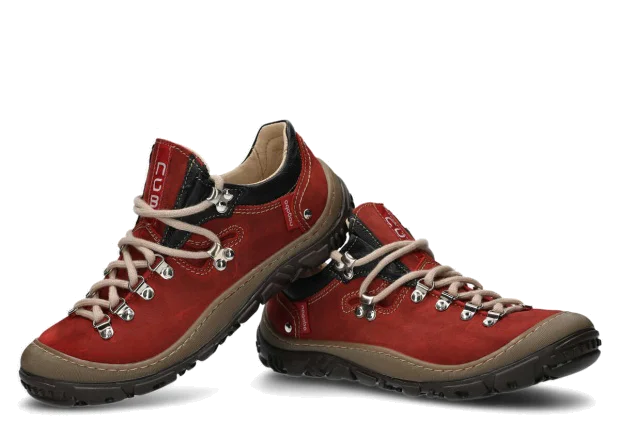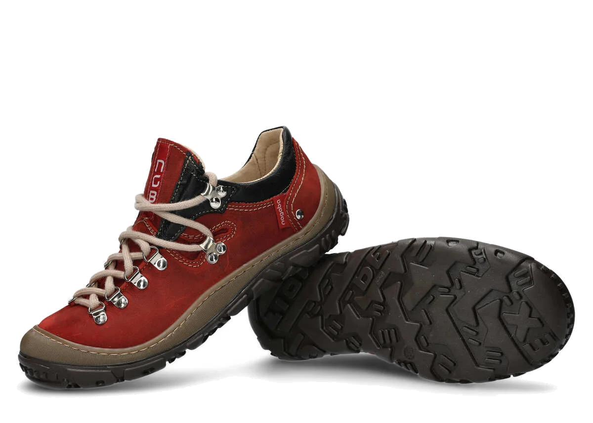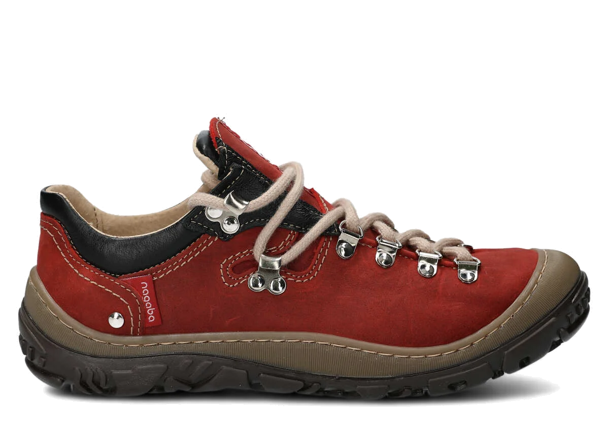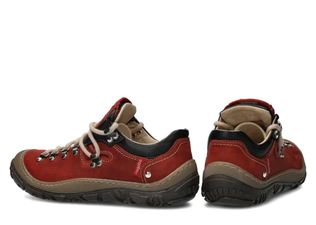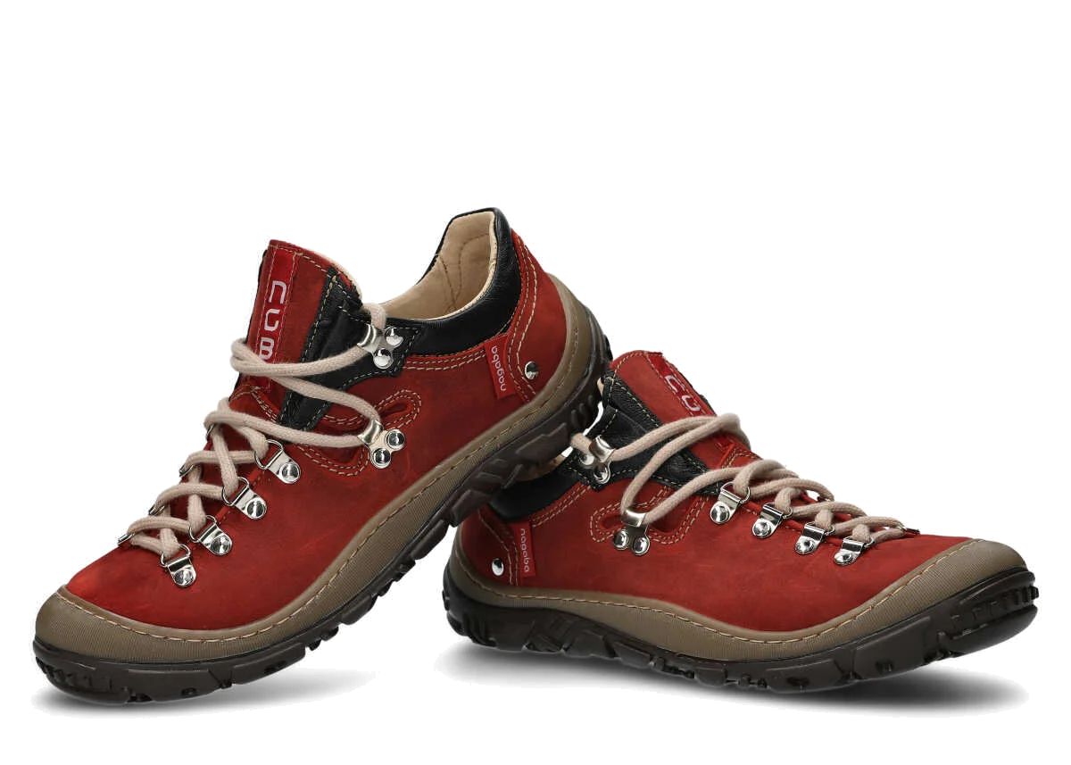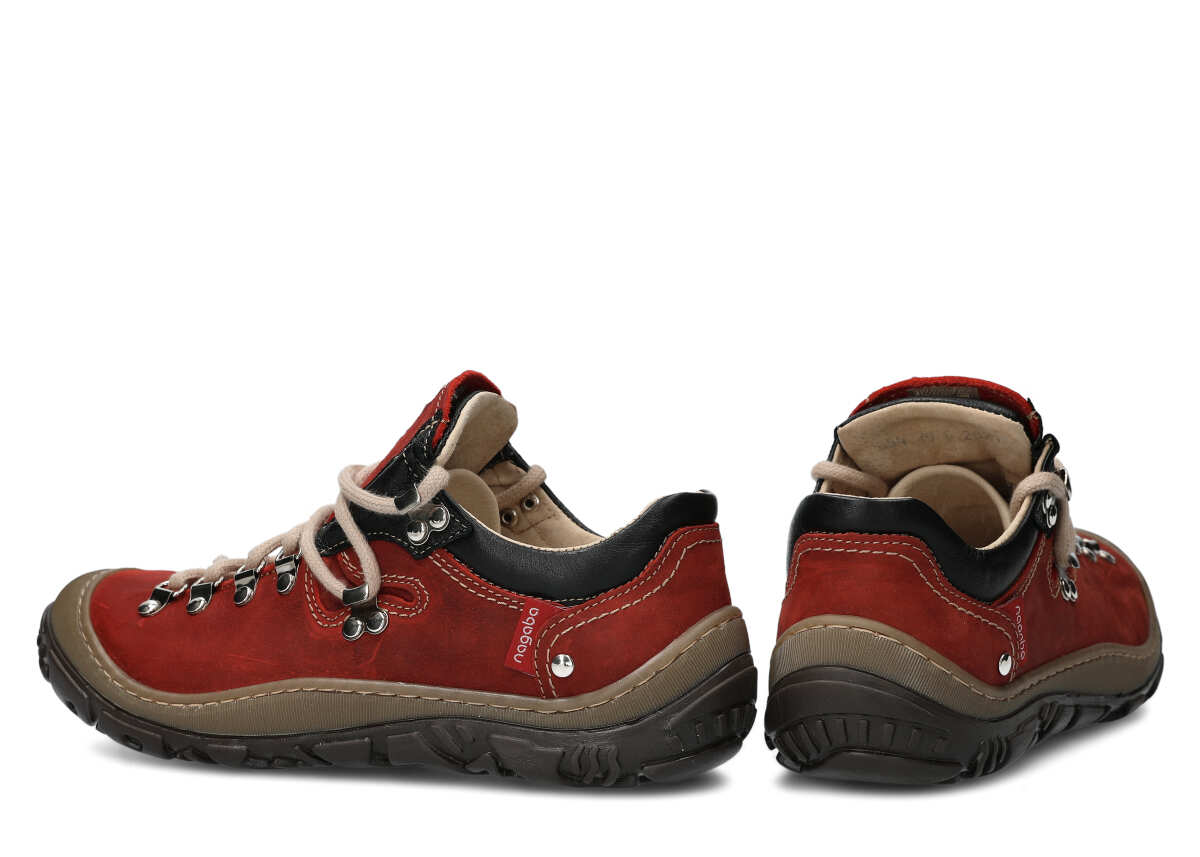 Opt for the red leather trekking boots to properly protect feet throughout many active seasons.