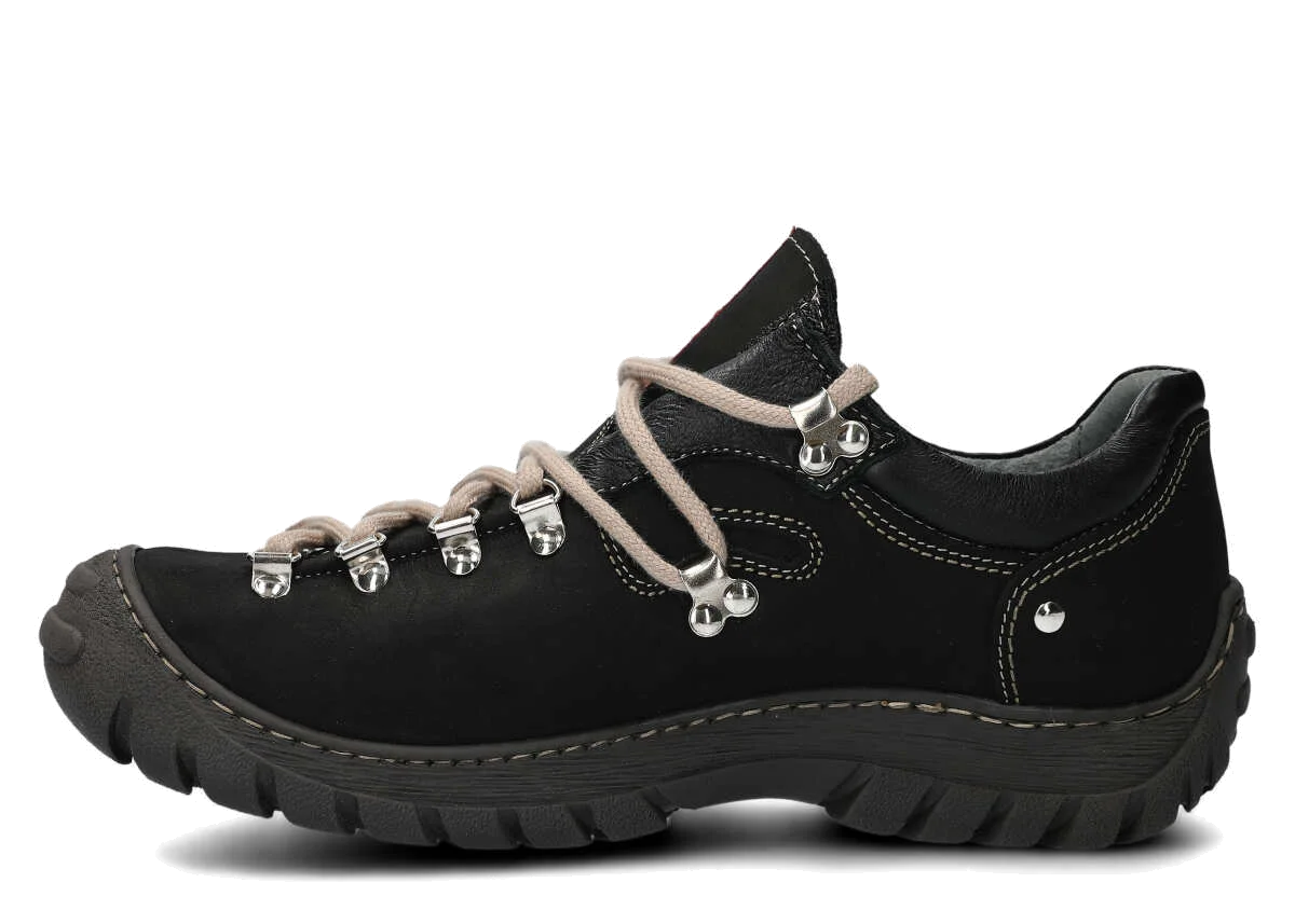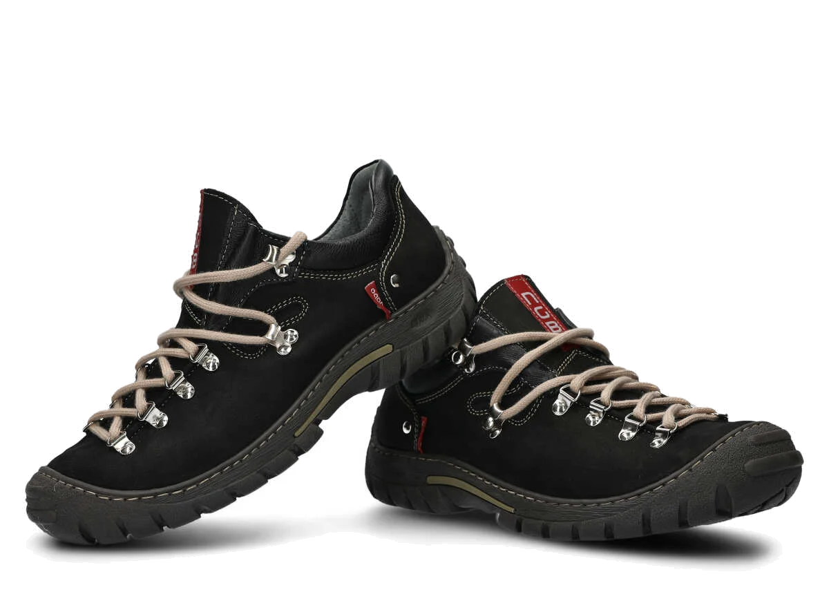 Opt for the black leather trekking boots to properly protect feet throughout many active seasons.