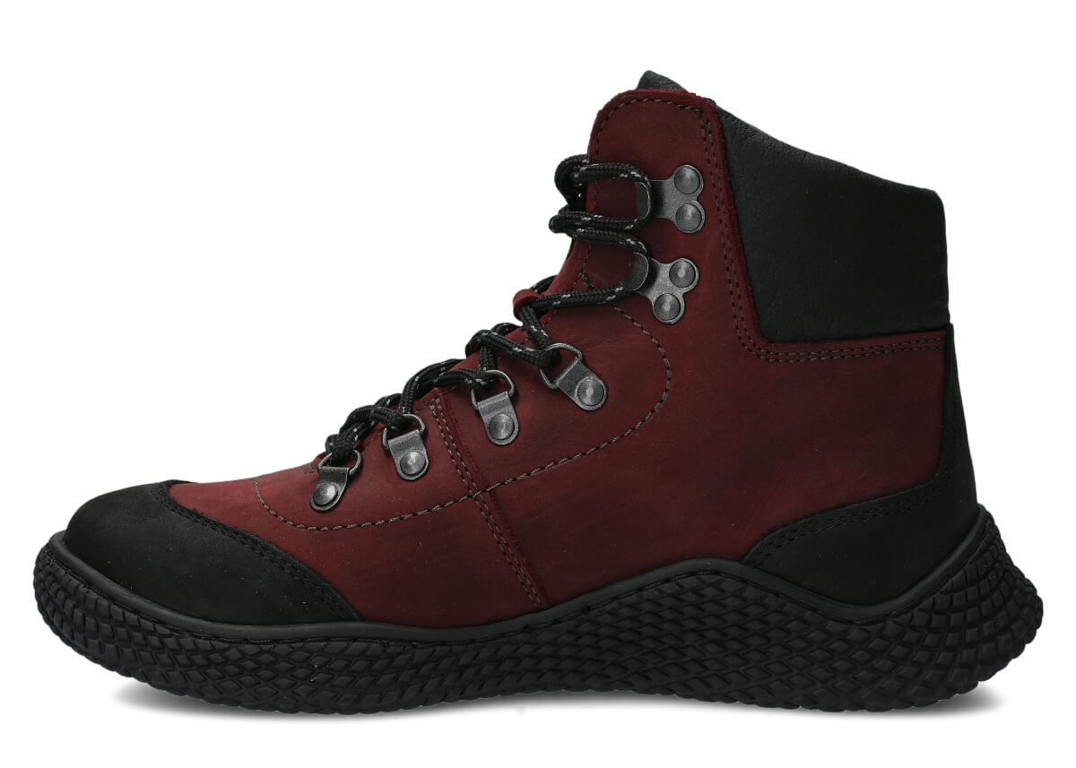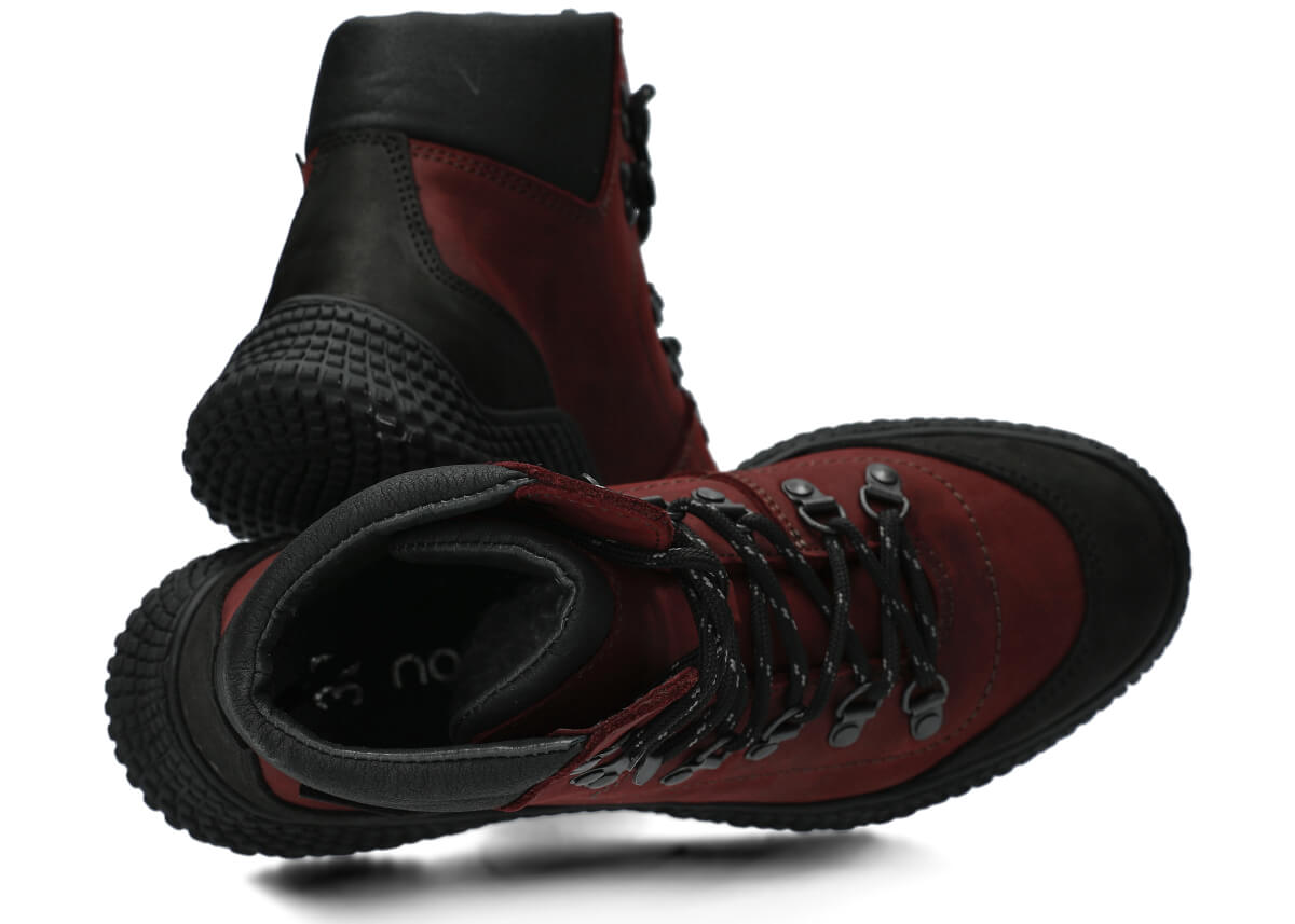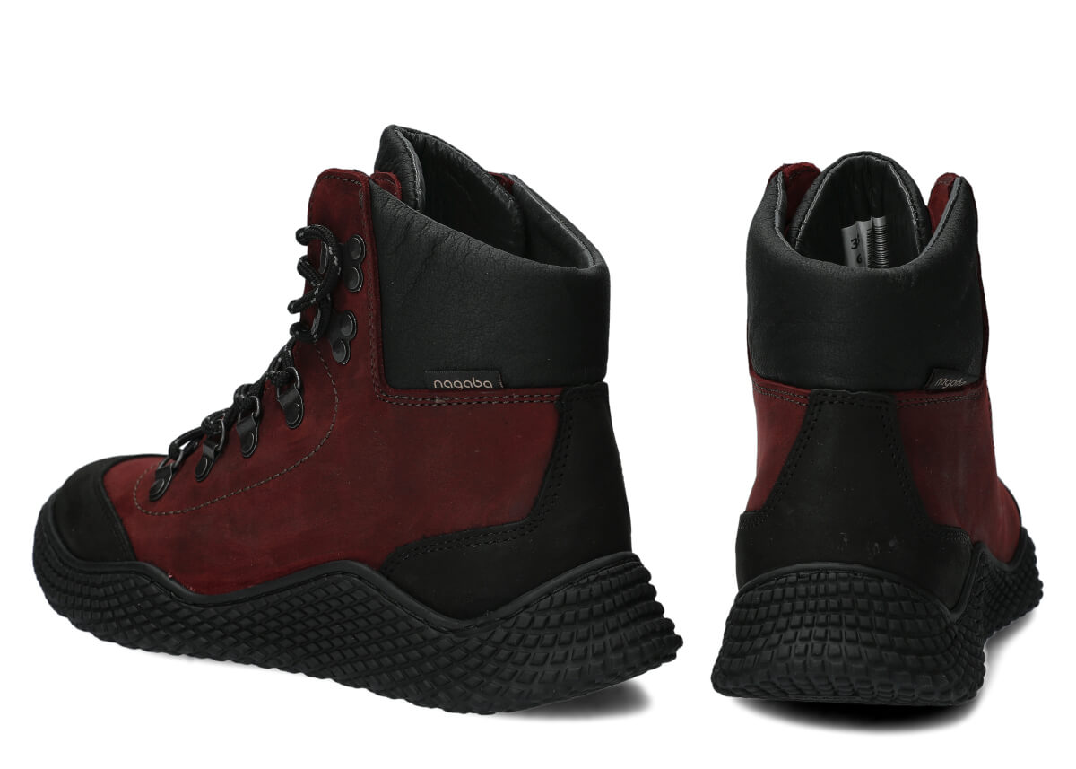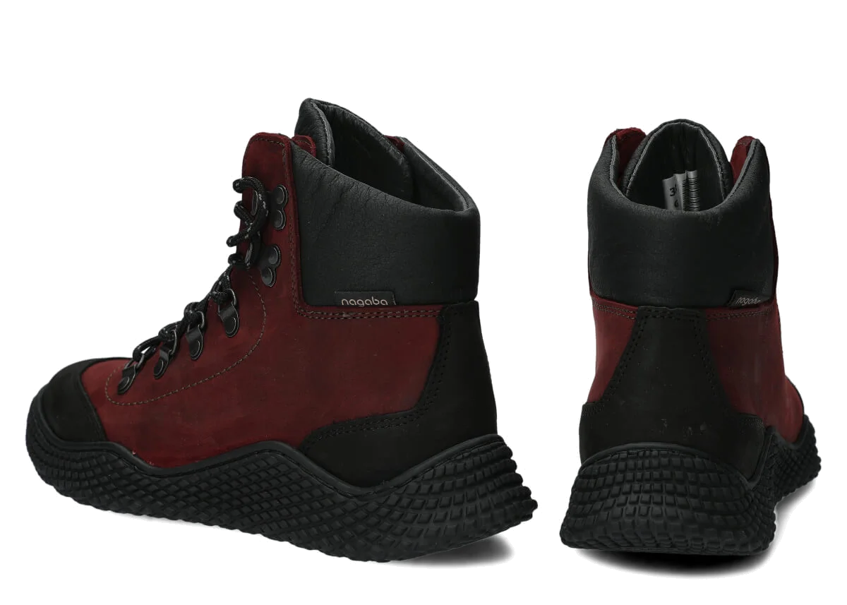 The Nagaba 624 burgundy crazy women's ankle boots perfectly cater to the taste of women and teenagers, combining sporty energy with everyday elegance. Featuring a high-top design, a contrasting combination of burgundy and black crazy leather, and handcrafted in Poland, these youthful boots offer a modern look while being incredibly durable and comfortable.