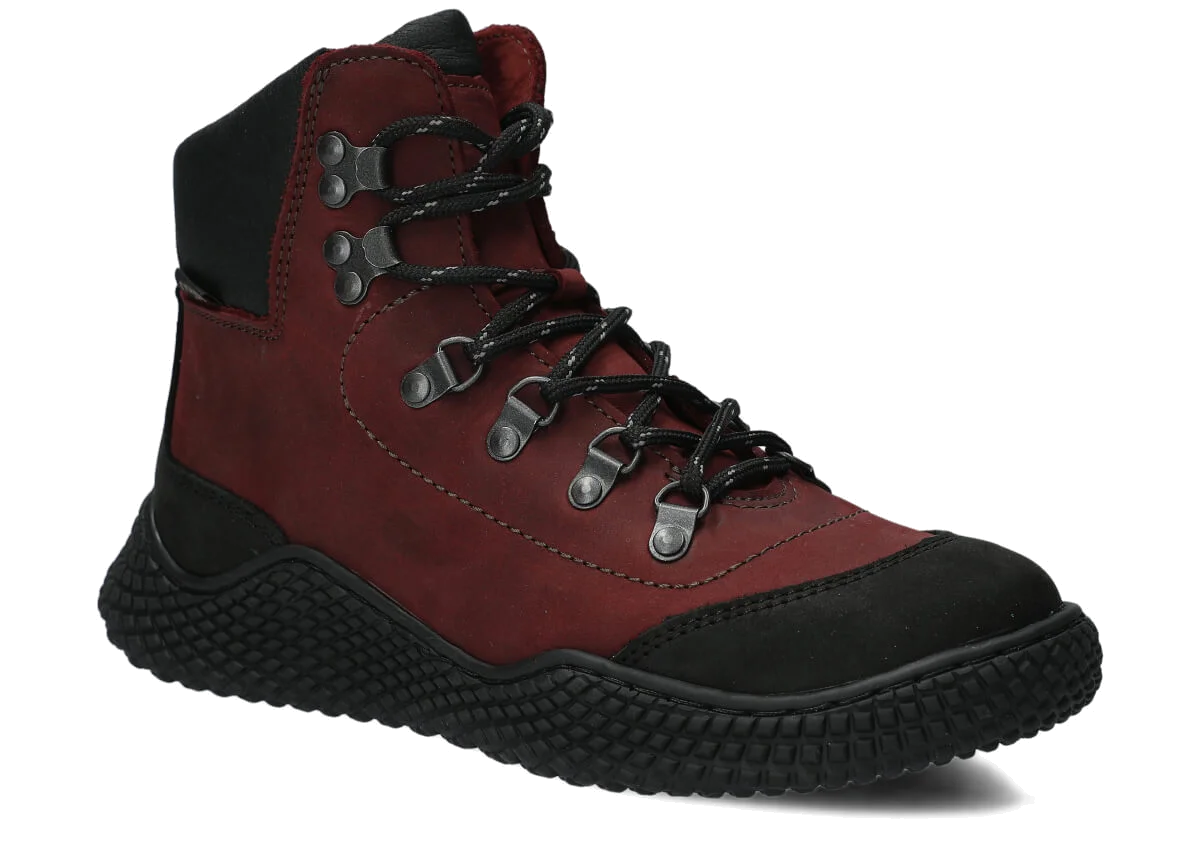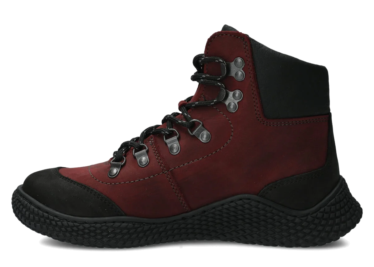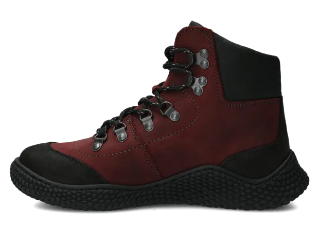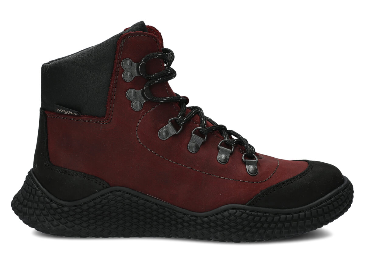 The Nagaba 624 burgundy crazy women's ankle boots perfectly cater to the taste of women and teenagers, combining sporty energy with everyday elegance. Featuring a high-top design, a contrasting combination of burgundy and black crazy leather, and handcrafted in Poland, these youthful boots offer a modern look while being incredibly durable and comfortable.