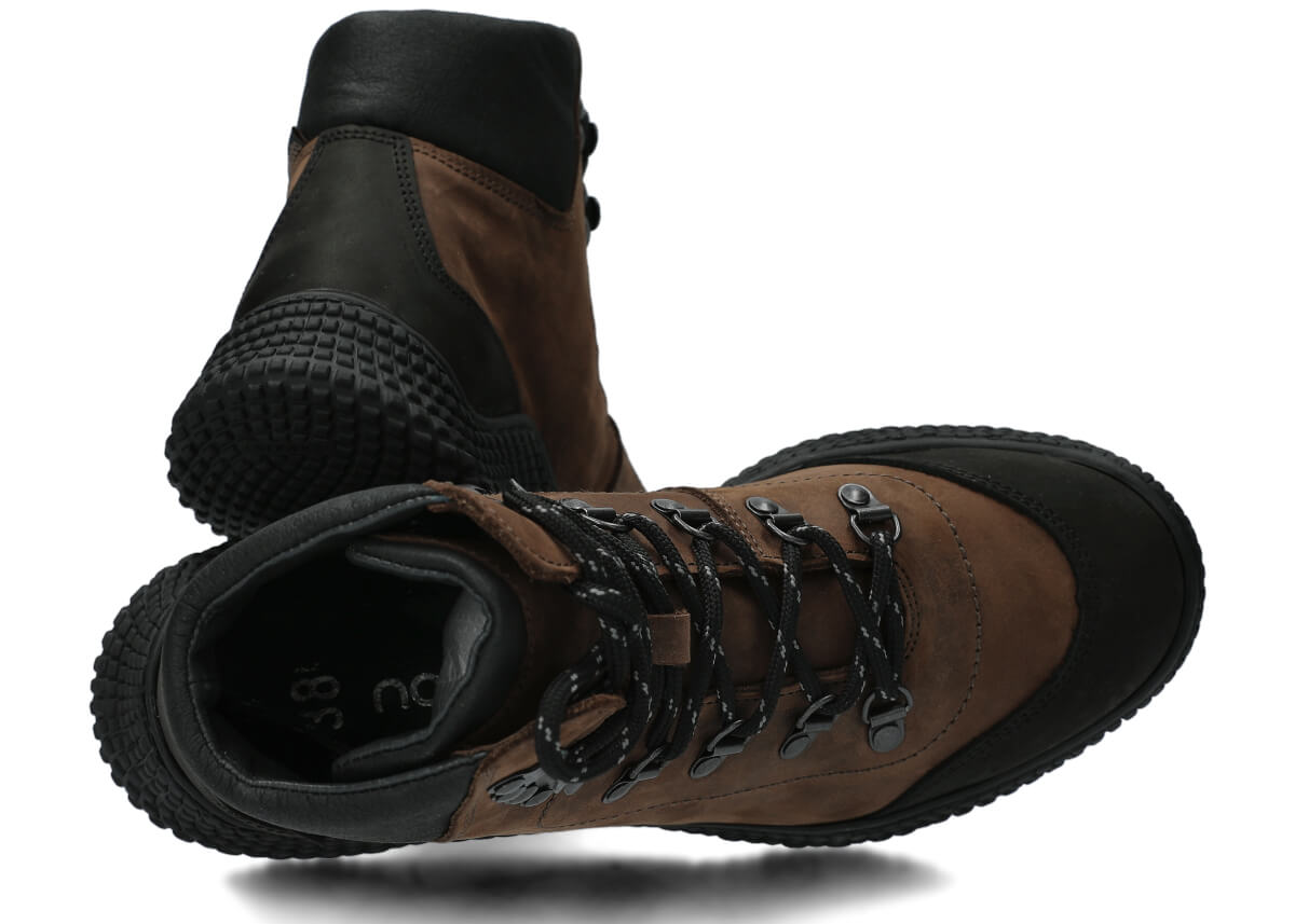 Metal eyelets and hooks + sturdy black trekking laces allow precise fit.