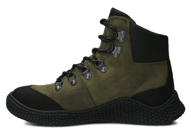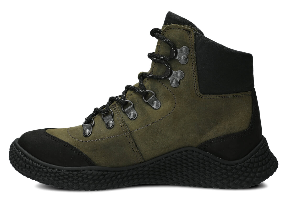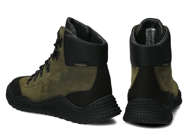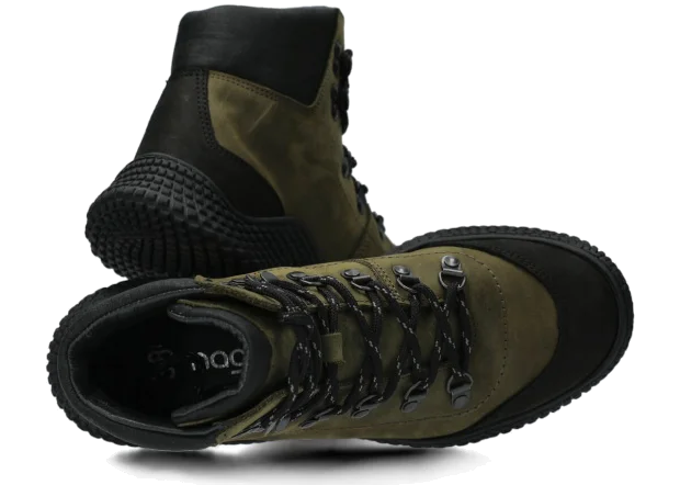 The Nagaba 624 olive green crazy women's ankle boots perfectly cater to the taste of women and teenagers, combining sporty energy with everyday elegance. Featuring a high-top design, a contrasting combination of olive green and black crazy leather, and handcrafted in Poland, these youthful boots offer a modern look while being incredibly durable and comfortable.