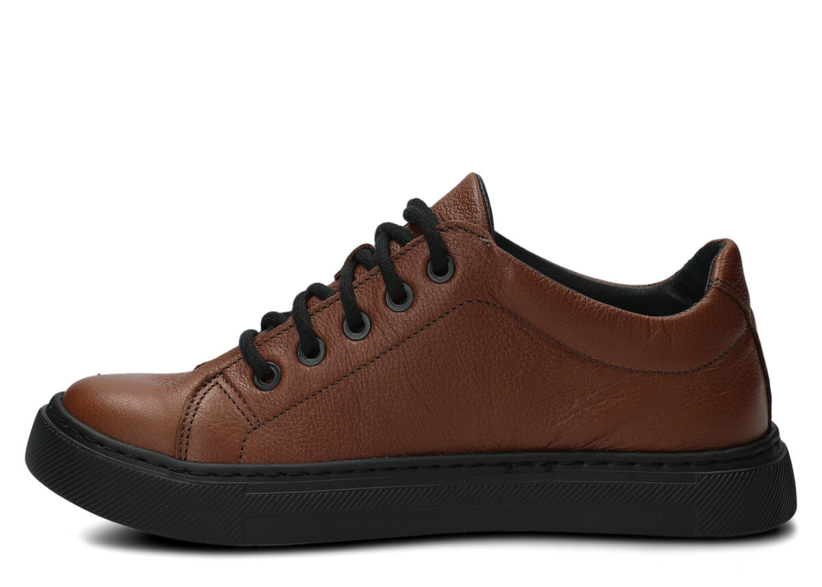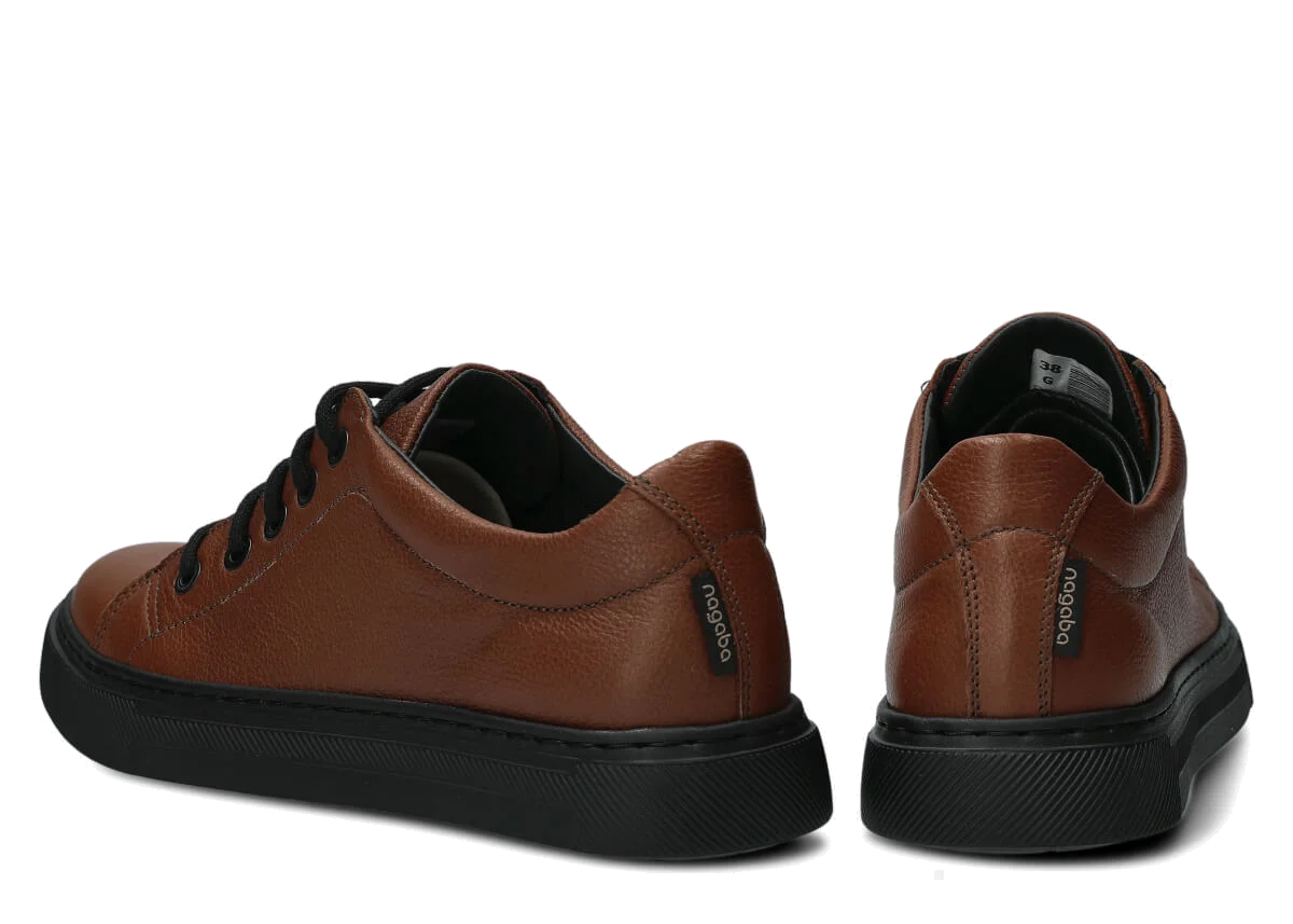 Kabir - full-grain leather, smooth, not very flexible, hard. Similar in structure to Bosman type leather. Two-toned. Under the black top layer is the base color. The proper effect is achieved by mechanically abrading the black layer. Footwear made of Kabir leather changes color to a more intense shade during use.