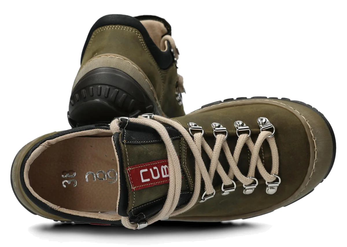 Opt for the olive green leather trekking boots to properly protect feet throughout many active seasons.